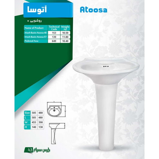 پارس سرام روشویی مدل آتوسا کد یکی از محصولات شرکت پارس سرام روشویی مدل آتوسا می باشد. استفاده از مواد
