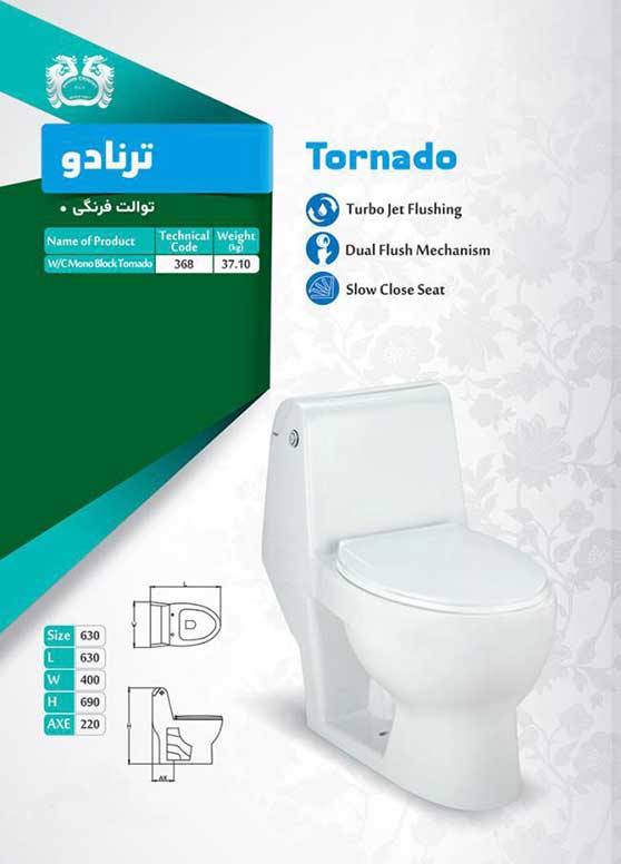 یکی از محصولات شرکت پارس سرام توالت فرنگی مدل ترنادو می باشد.