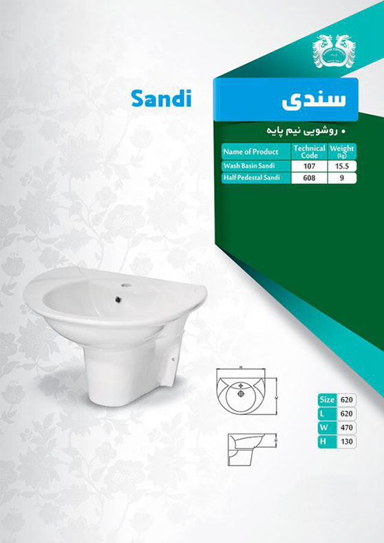 یکی از محصولات شرکت پارس سرام روشویی نیم پایه مدل سندی می باشد.