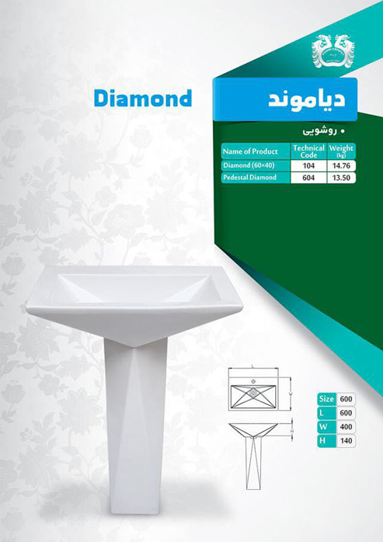 یکی از محصولات شرکت پارس سرام روشویی مدل دیاموند می باشد.