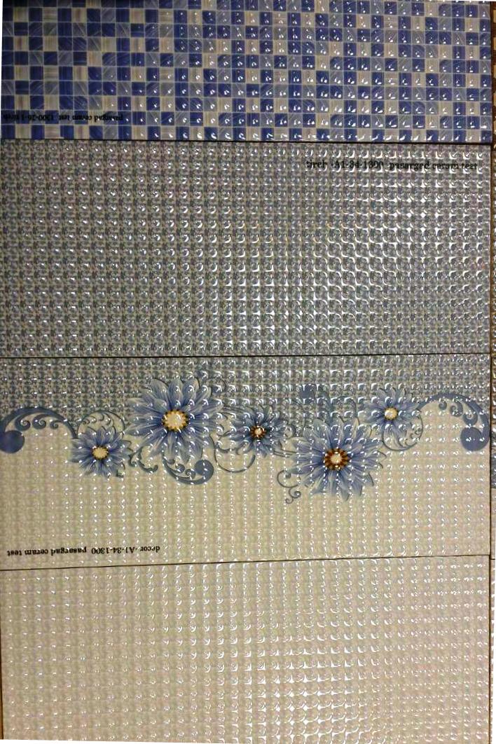 که نوع برش آن کالیبره یا(رکتی) است . این نوع برش (کالیبره) در هنگام چینش بدون هیچ گونه فاصله ای در کنار هم قرار میگیرن و جلوه زیباتری در فضای ساختمان ایجاد می کند . کاربرد این کاشی دیوار میباشد .لعاب آن براق میباشد .خاک بدنه این محصول قرمز است. این نوع کاشی طرحدار (گل دار)است که در صورت نورپردازی صحیح جلوه و نمای زیبایی دارد. محل استفاده این کاشی .داخل ساختمان.آشپزخانه-سرویس بهداشتی-حمام -دستشویی می باشد.