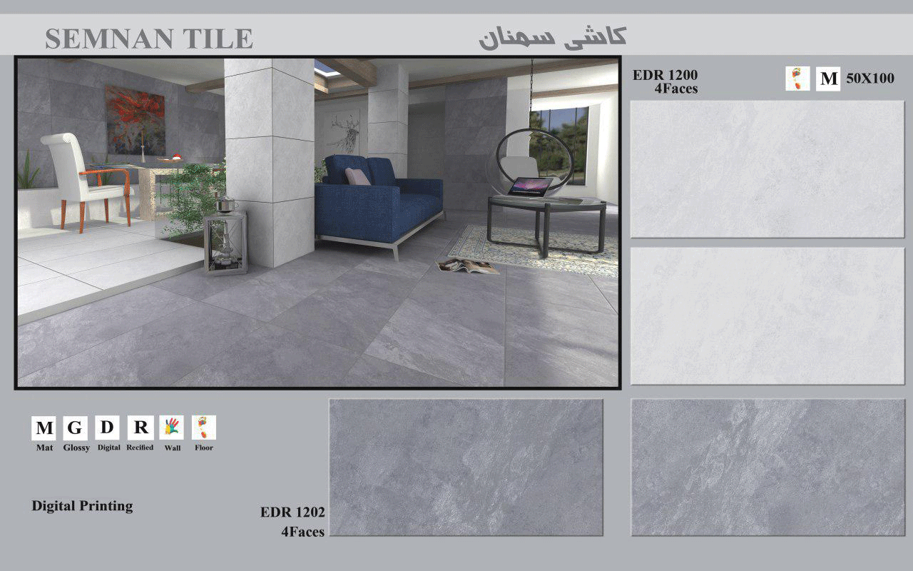 کاشی سمنان 100*50 کد 1906 یکی از گزینه ها برای استفاده در فضای داخل ساختمان کاشی سمنان کد1906 می باشد. این محصول با رنگ زمینه طوسی با سایز 100*50 عرضه شده و برای کف فضای مورد نظر استفاده می شود . در زیبا سازی فضای مورد نظر تاثیر بسزایی دارد . با وجود رکتی بودن جلوه زیبایی به محیط می دهد. مشخصات محصول رنگ طیف رنگ طوسی درجه سایز 100*50 کاربرد کف نوع لعاب مات محل استفاده آشپزخانه-سالن نوع برش رکتی(بدون بند)-کالیبره نوع خاک بدنه خاک قرمز نوع طرح طرح سنگ کاشی سمنان 100*50 کد 1906