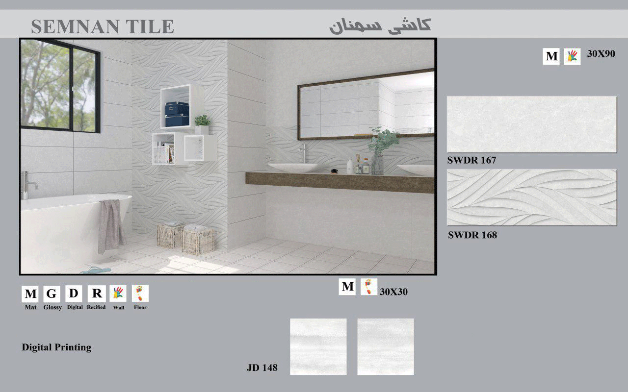 این محصول با رنگ زمینه کرم و با سایزهای 90*30 و 30*30 عرضه شده و برای دیوار و کف فضای مورد نظر استفاده