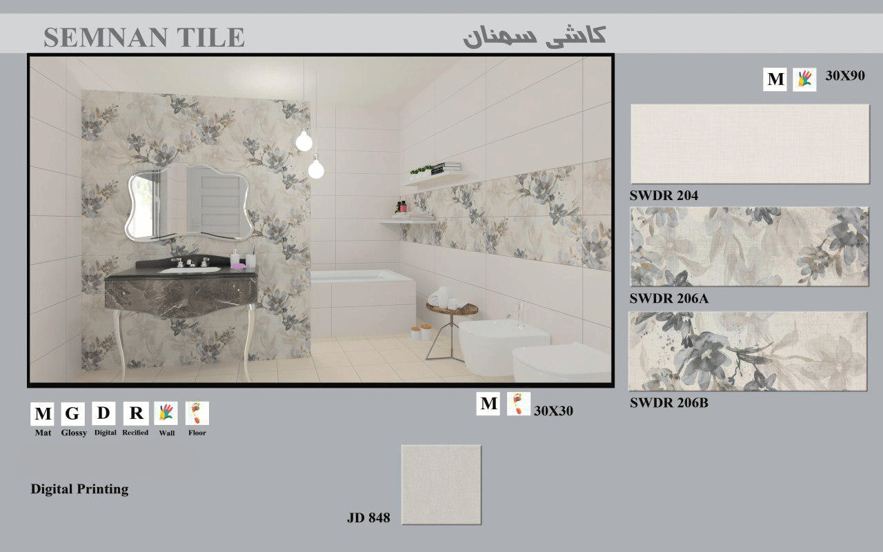 این محصول با رنگ زمینه کرم و با سایزهای 90*30 و 30*30 عرضه شده و برای دیوار و کف فضای مورد نظر استفاده