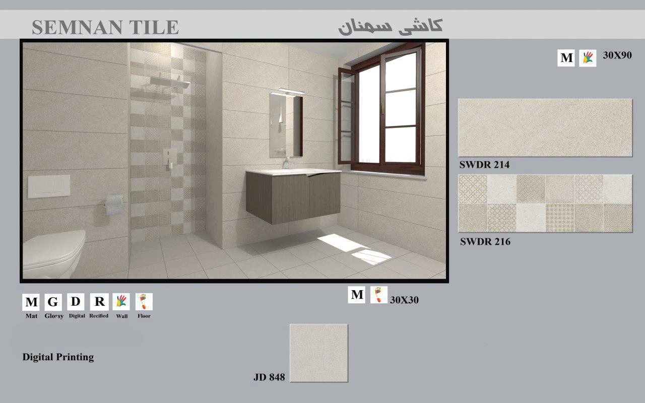 این محصول با رنگ زمینه کرم و با سایزهای 90*30 و 30*30 عرضه شده و برای دیوار و کف فضای مورد نظر استفاده